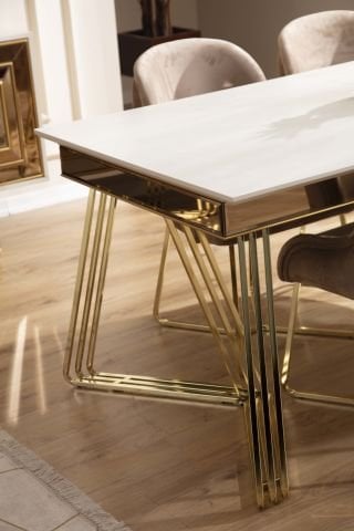 Pugon Ekru Yemek Odası;1 Ad Konsol ve Ayna,1 Ad Masa, 6 Ad Sandalyeden Oluşmaktadır.